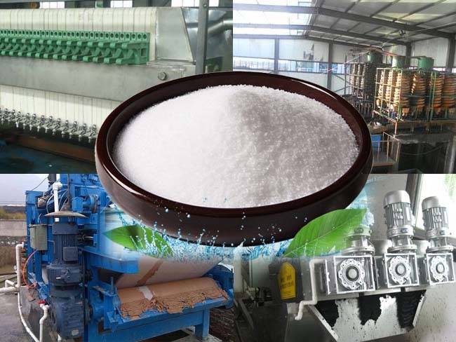 用于污泥脫水時可根據污泥可選用陽離子聚丙烯酰胺,能夠有效的在污泥進入壓濾之前進行污泥脫水,脫水時,產生絮團大,不粘濾布,壓濾時不散,流泥餅較厚,脫水效率高。